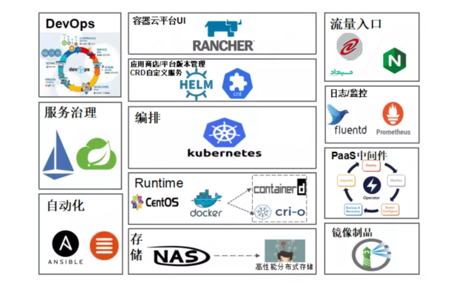 ?分層架構Kubernetes為核心組件的PaaS平臺,整合EFK,Prometheus,Harbor等附加組件,PaaS服務分為三個平面,分別為管理平面、控制平面、計算平面。