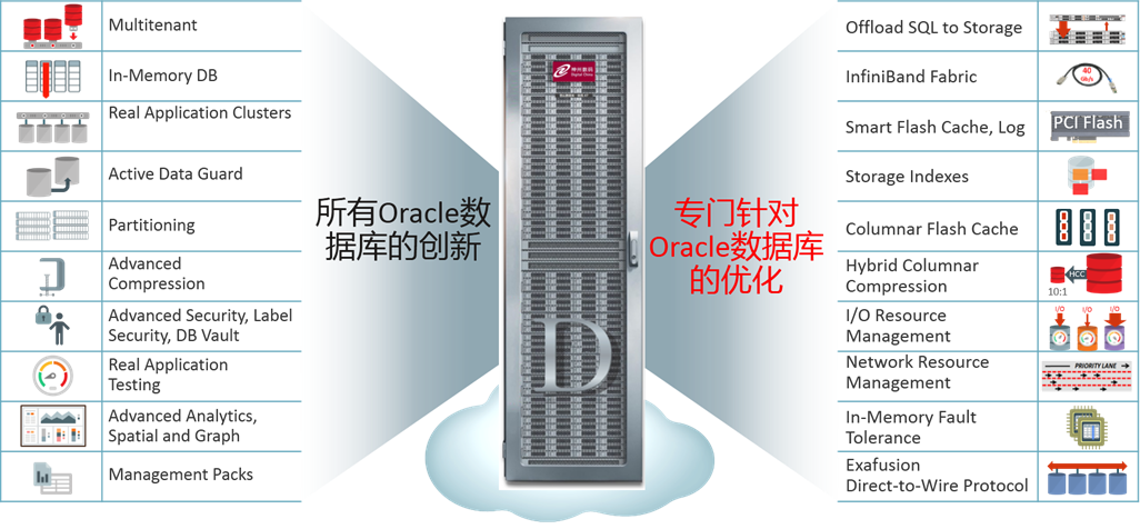 神州數碼登云數據庫一體機通過集成設計為Oracle數據庫帶來了卓越的性能、極佳的成本效益和極高的可用性。登云數據庫一體機采用支持云的現代化架構,內含可橫向擴展的高性能數據庫服務器、可橫向擴展的智能存儲服務器(配有先進的PCIe閃存)、使用持久性內存的先進存儲緩存以及連接所有服務器和存儲的云級RDMA over Converged Ethernet (RoCE) 內部結構。登云數據庫一體機采用獨有的算法和協議,在存儲、計算和網絡中實現了數據庫智能,因此,與其他平臺相比,能以更低的成本提供更高的性能和容量。它適用于所有類型的現代數據庫負載,包括聯機事務處理(OLTP)、數據倉庫(DW)、內存分析、物聯網(IoT)、財務、游戲、合規性數據管理以及高效整合的混合負載。登云數據庫一體機部署簡單、快速,能為您極其重要的數據庫提供全面的支持和保護。